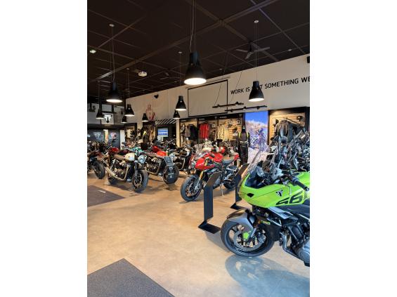 Dans un espace dédié à la marque vous trouverez des motos TRIUMPH neuves et des occasions toutes marques, les accessoires moto et tout l’équipement du motard.